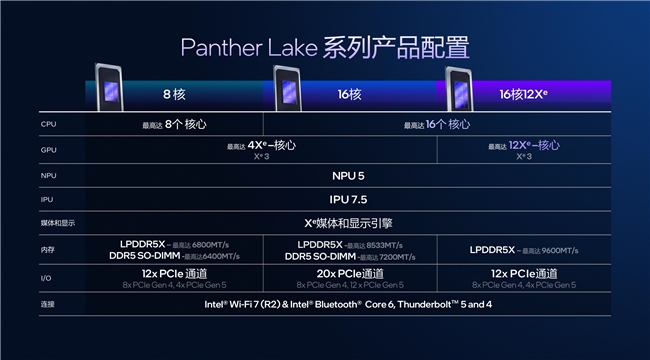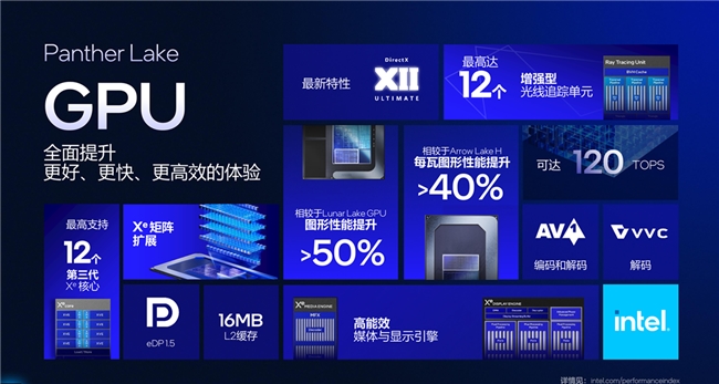 除此之外,X7 358H处理器基于Panther Lake架构,采用18A先进制程,拥有16核心(4个P核+8个E核+4个LPE核),线程数达16,睿频最高可达4.8GHz,缓存容量18MB,处理器最大Turbo功耗可高达80W,在性能与能效比之间实现完美平衡,既能满足高负载任务需求,又能有效降低功耗与噪音。