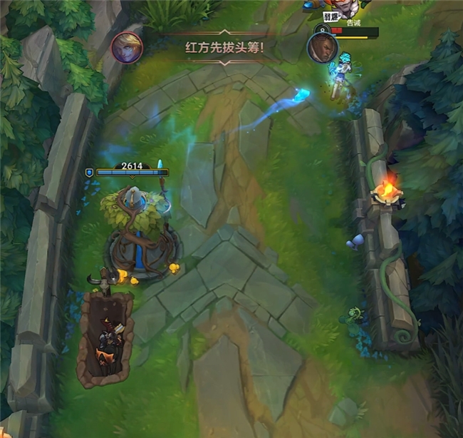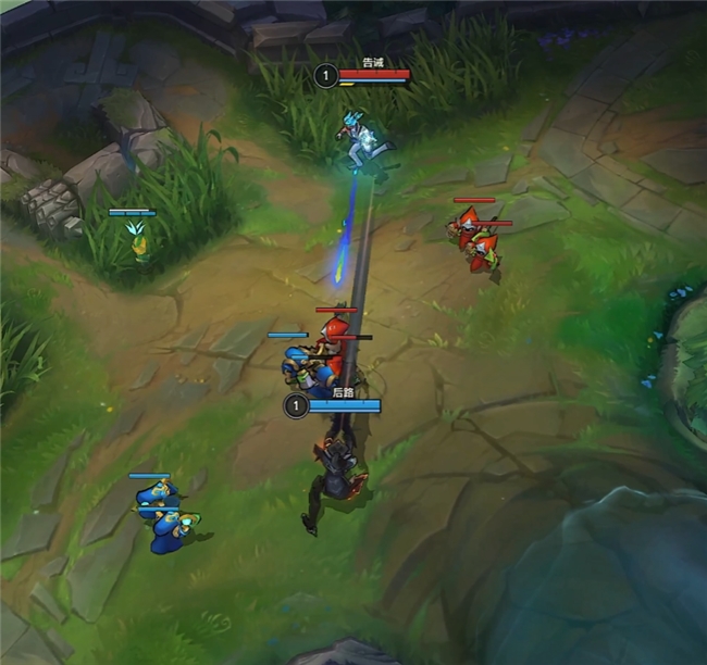 第一局比赛是路人玩家告诫与后路的对决。告诫选择的是EZ,后路则是选择了卢锡安。这第一局比赛可以说是相当精彩,虽然开局告诫凭借着EZ精准的技能释放成功拿到了卢锡安的“一血”。