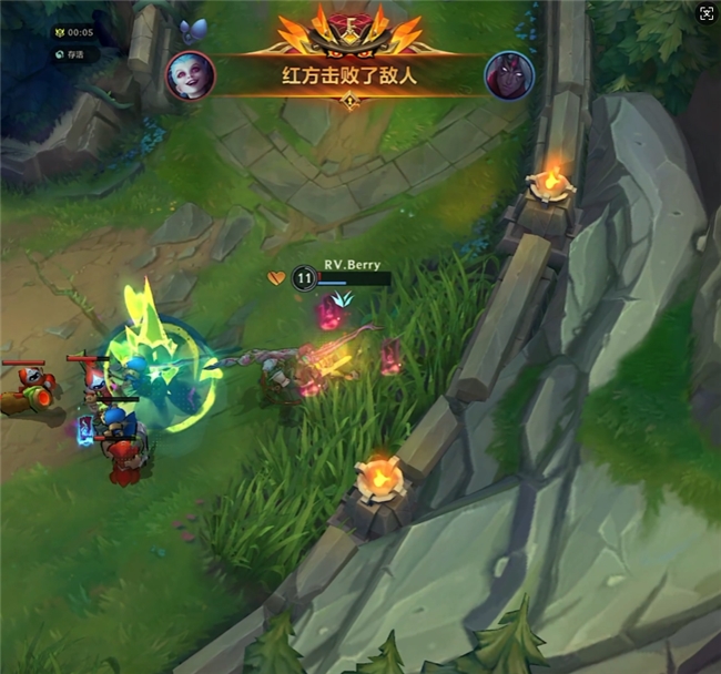 第二局,则是职业选手Yuli与Berry之间的对决。这局比赛,Yuli拿出了自己非常擅长的韦鲁斯,Berry则是拿出了与此次直播主题相对应的金克丝,并且还使用了狂潮·异想皮肤。职业选手之间的对决往往更加注重细节。不过有趣的是,或许是因为这次直播是金克丝的主场,Berry操作金克丝的时候特别顺手。最终,Berry还是凭借着2-1的总比分成功击败了Yuli的韦鲁斯拿到了胜利。