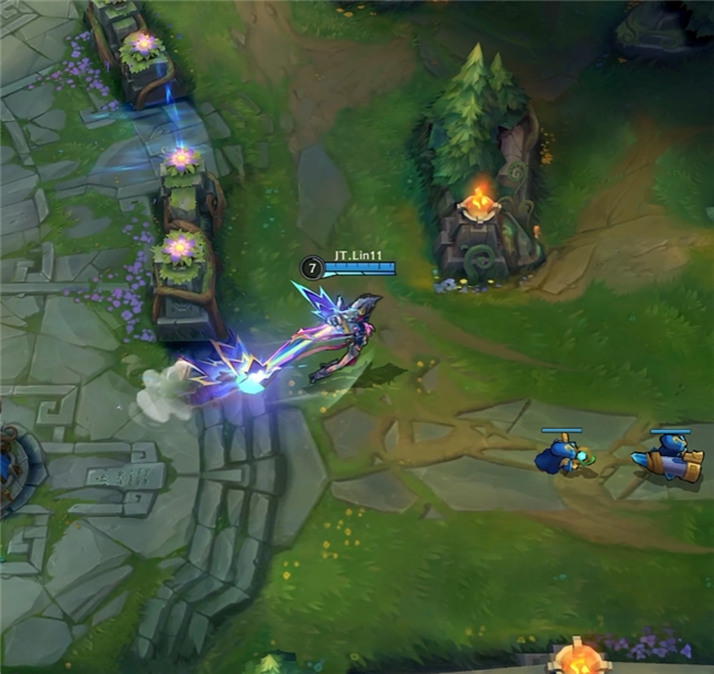击杀敌人触发被动“罪恶快感”后,金克丝不仅会变身,更有专属BGM随之响起。而她回城的特效直接使用喷气激光从泉水出发,如同火箭升空,帅气离场。