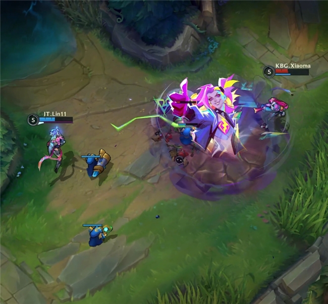 不过有趣的是,虽说是金克丝超级擂台赛。但此次的参赛选手依旧是好胜心十足。除了能够看到“狂潮”觉醒系列皮肤的金克丝对阵金克丝的Solo赛之外,还能够看到其他ADC英雄的对决。用解说的原话说就是,金克丝“狂潮”觉醒系列皮肤真的是太赞了。所以这些ADC英雄也想要通过在金克丝超级擂台赛中的亮相为自己“谋求”属于自己的觉醒皮肤。