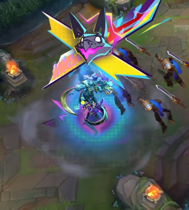 如果说一款皮肤能直接封神,那“终焉宣言”无疑就是这样的存在。从游戏开始踏入泉水的那一刻起,排面直接拉满,泉水上方矗立着专属的炫酷雕像,宣告着你才是真正的主角。
