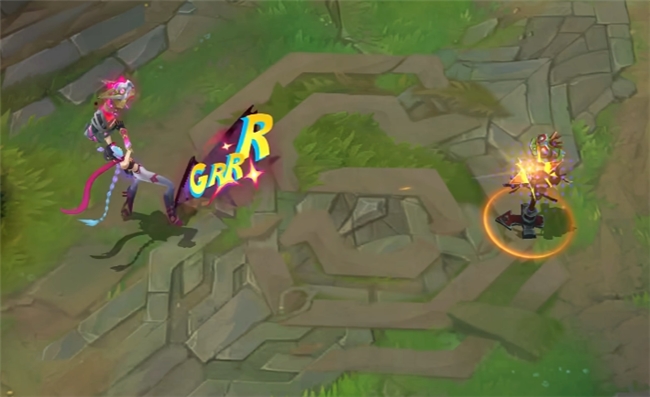 这款皮肤是金克丝的武器造型更具电磁科幻感,线条凌厉,充满力量。普攻叠加3次后命中敌人时会留下独特的 “GRRR”挑衅标识。