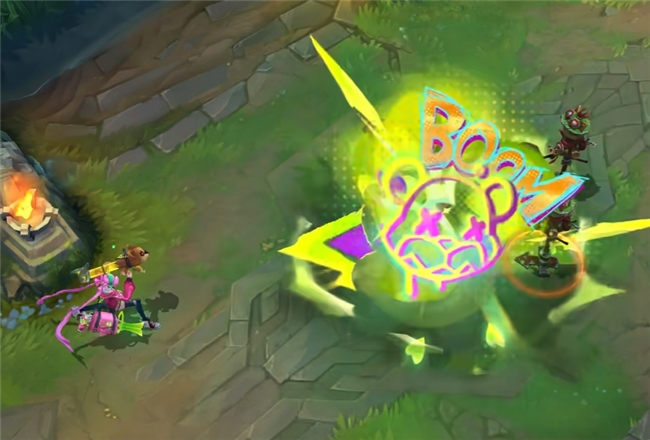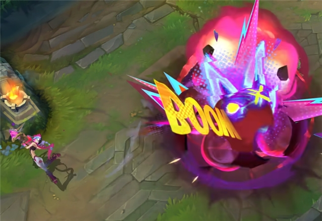 而最有趣的,莫过于她的大招,当“超究极死神飞弹”命中敌方英雄时,会在爆炸中心绽开一幅华丽的金克丝个人画像,并为你的命中率“点赞”。