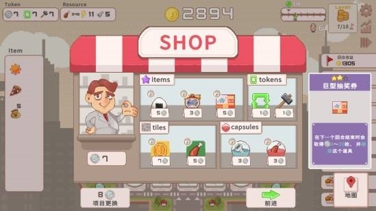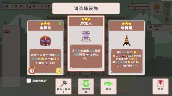 牢记基础规则:从三个选项中选一个设施,思考、布局、建造到地图上。在设施间自由移动的居民,进入设施后将为你忠诚劳作,获得报酬!时间一到,税收开启,衡量策略的时候开始了!你赚到的钱真的够缴税吗?